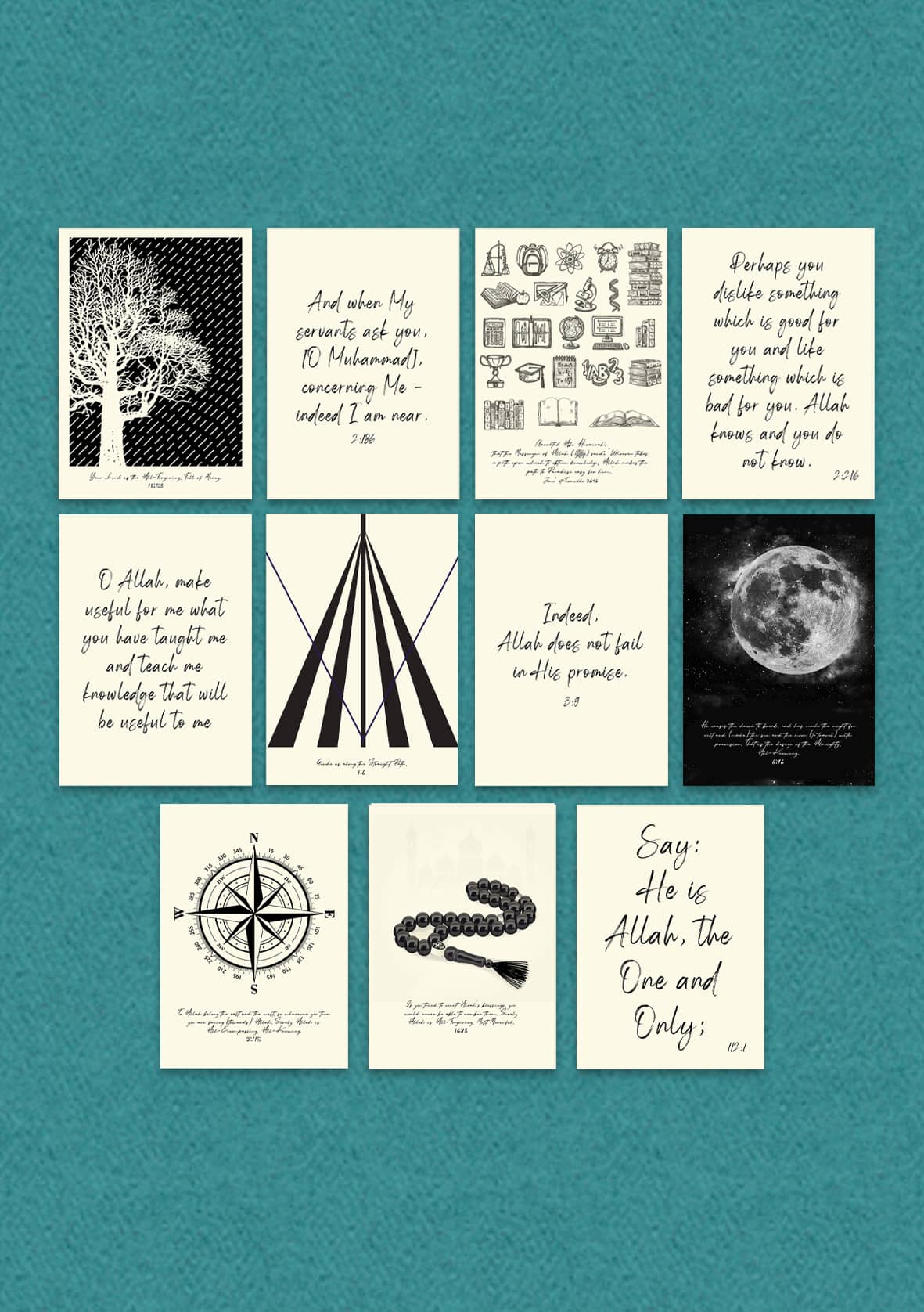 This beautifully curated set of 11 greeting cards features uplifting quotes from the Qur’an and Hadith, designed to inspire, comfort, and connect.